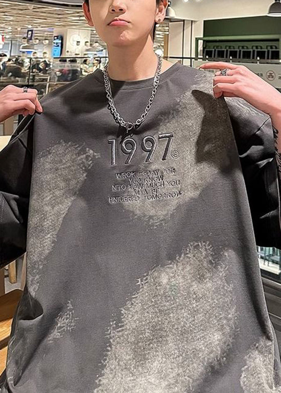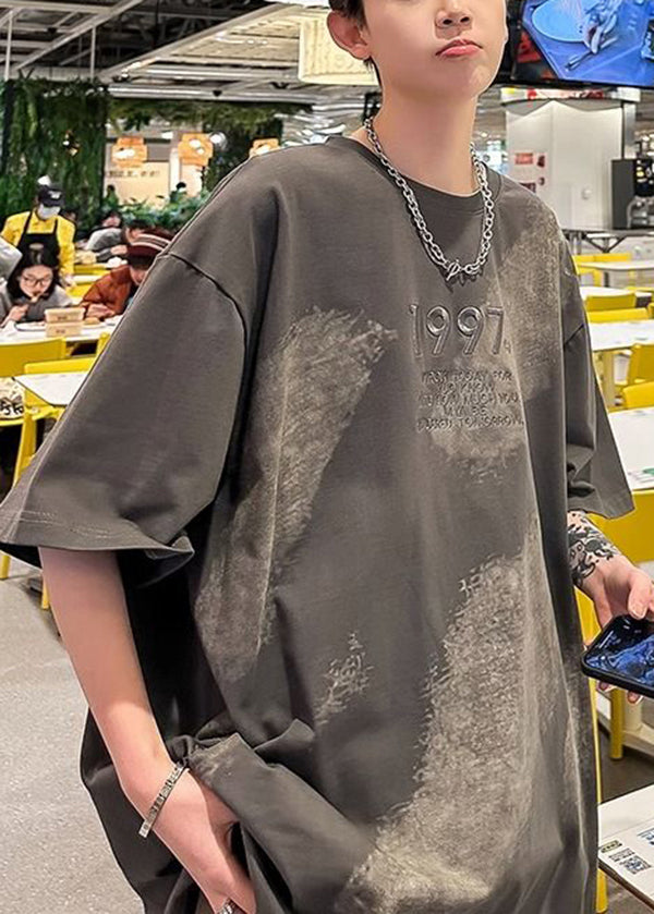 Stylish Apricot Embroideried Tie Dye Cotton Mens Graphic Tees Summer WA013