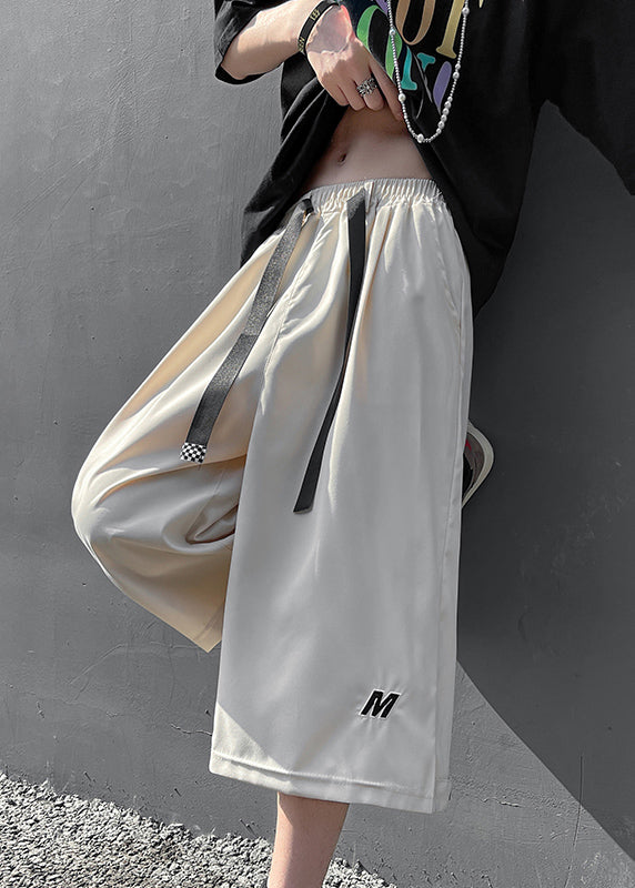 Stylish Beige Pockets Drawstring Men Crop Pants Summer YT027