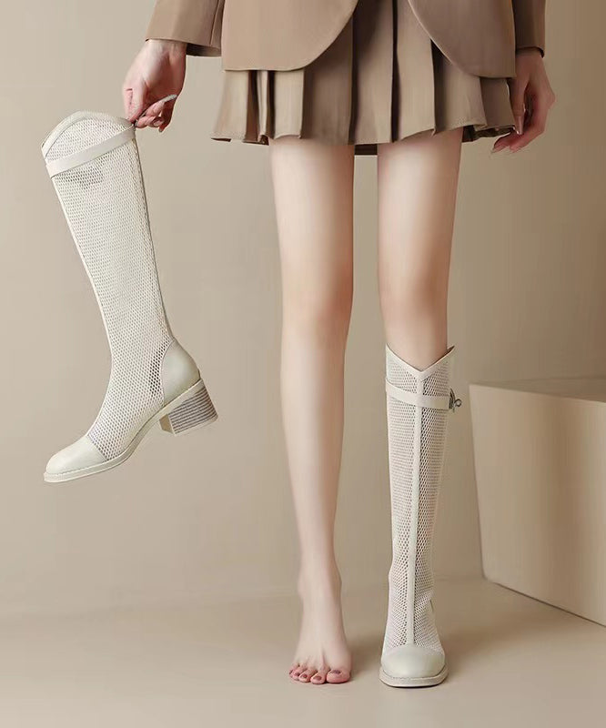 Stylish Black Hollow Out Breathable Mesh Splicing Zipper Boots SL1026