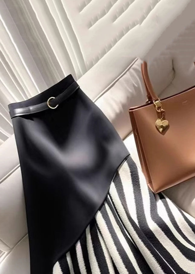 Stylish Black Zebra Pattern High Waist Patchwork Skirt Spring YJ010