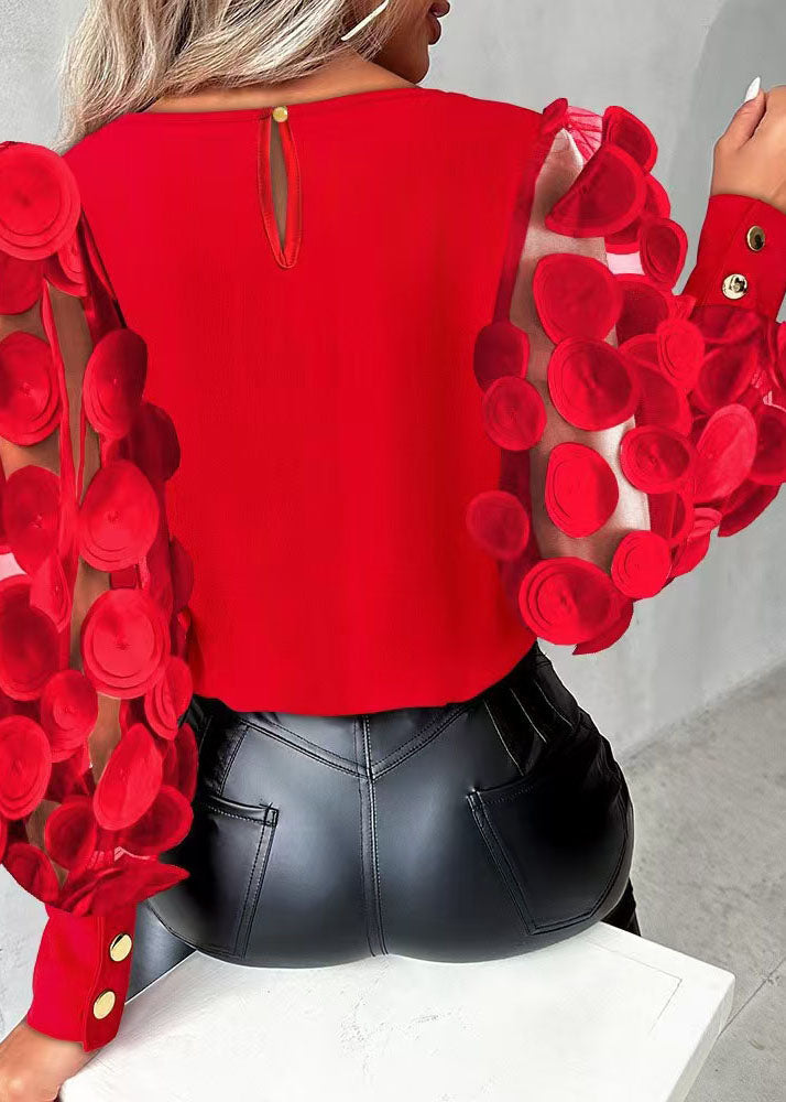 Stylish Blue O Neck Patchwork Chiffon Tops Petal Sleeve TL040