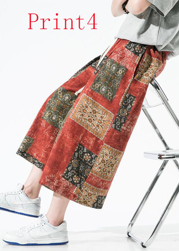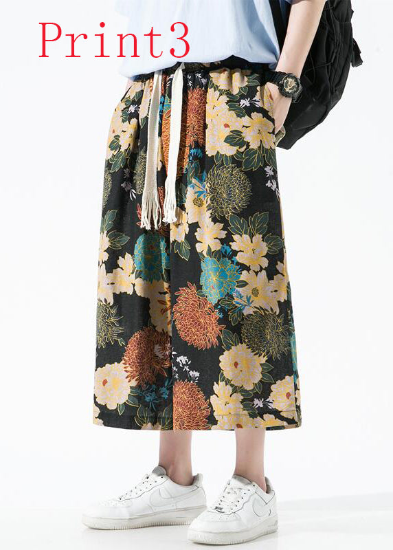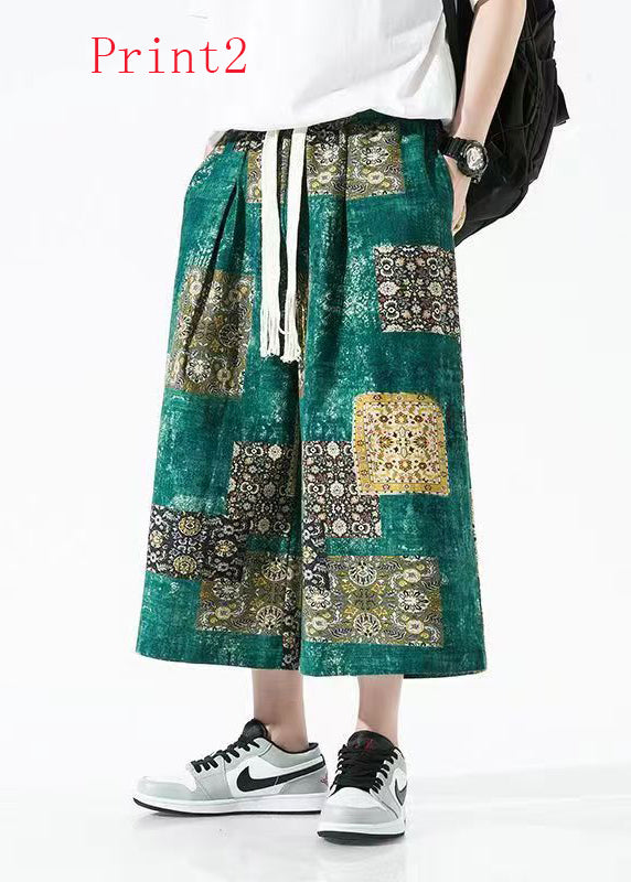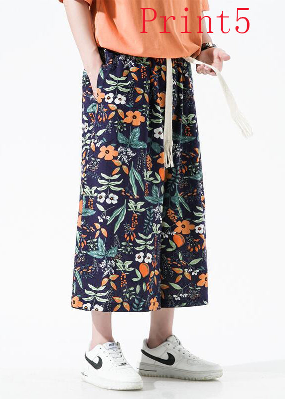 Stylish Blue Pockets Print Cotton Crop Pants Men Apparel Summer SA035