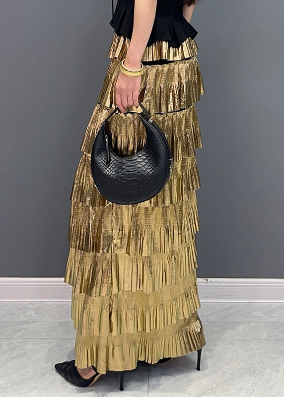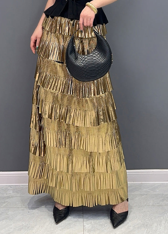 Stylish Gold High Waist Layered Wrinkled Skirts Summer AO1003