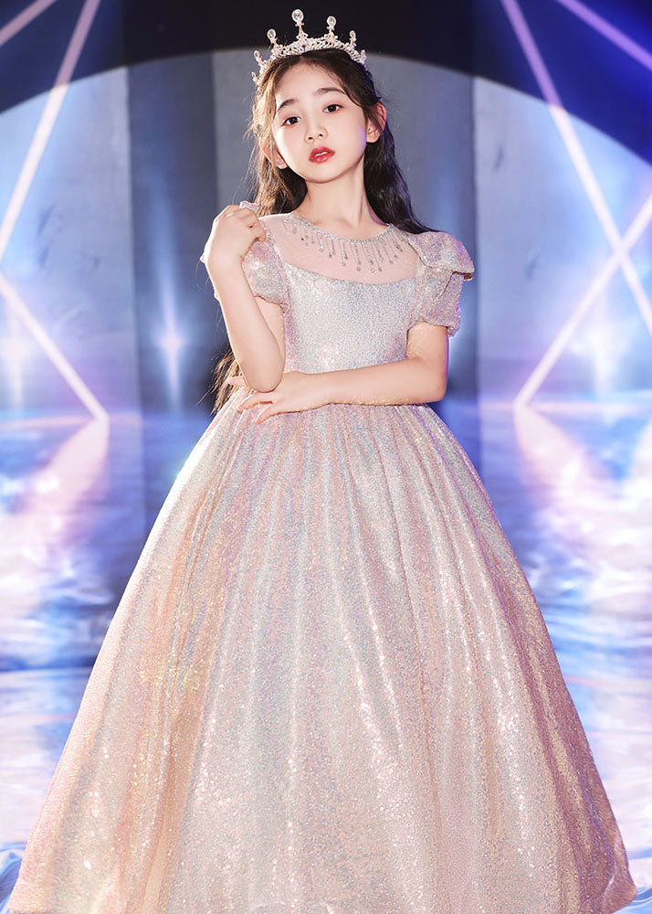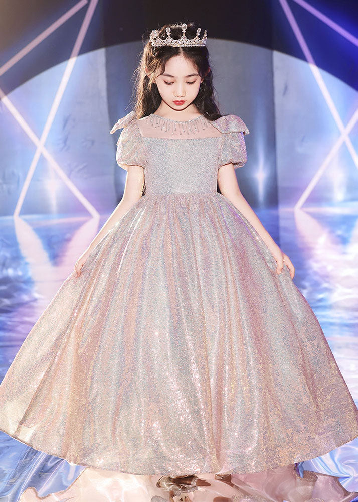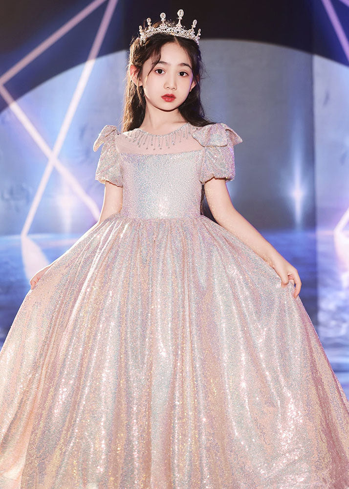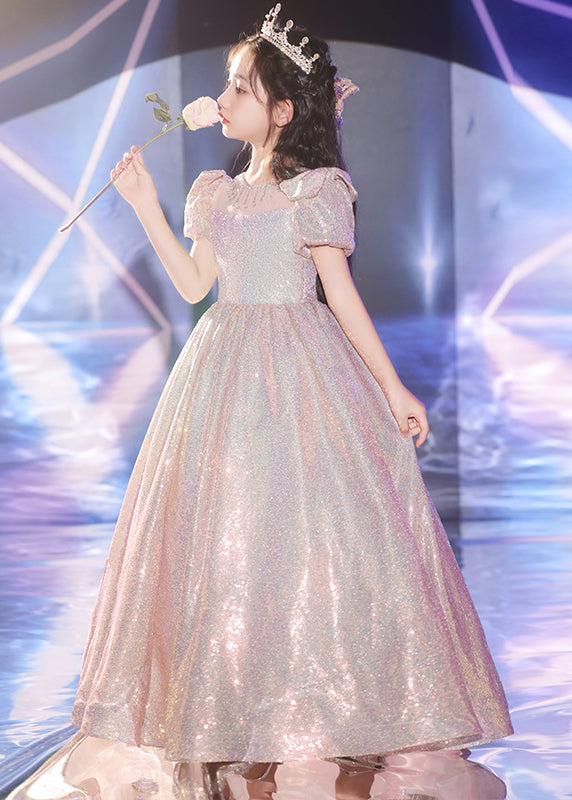 Elevate your child's wardrobe with the luxurious Stylish Pink O-Neck Tassel Patchwork Kids Satin Long Dress, featuring elegant short sleeves and exquisite tassel detailing. Perfect for any special occasion, this dress exudes sophistication and exclusivity.