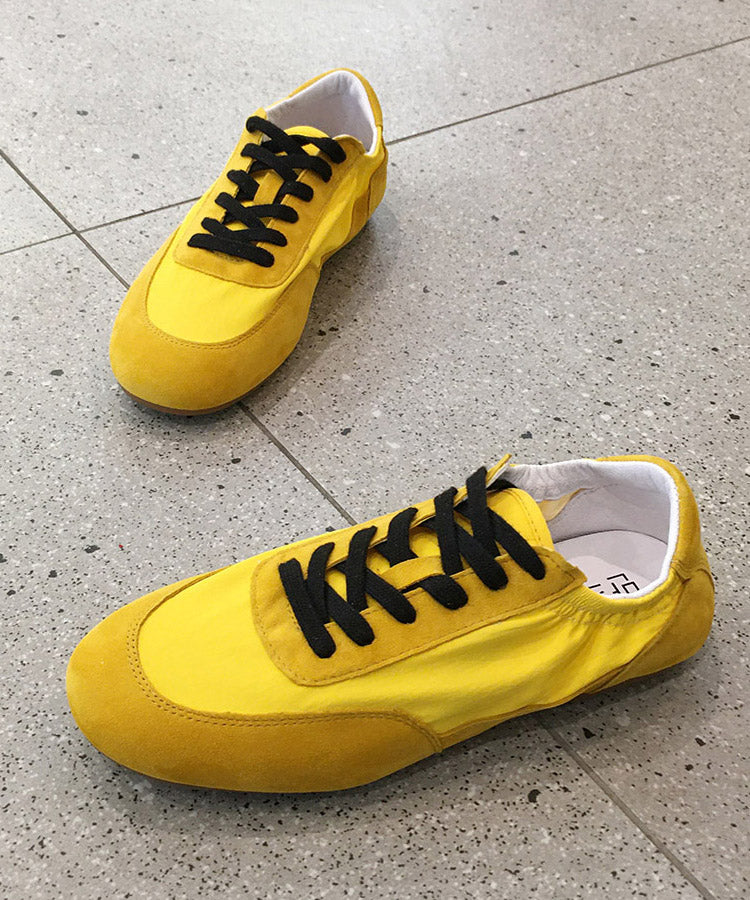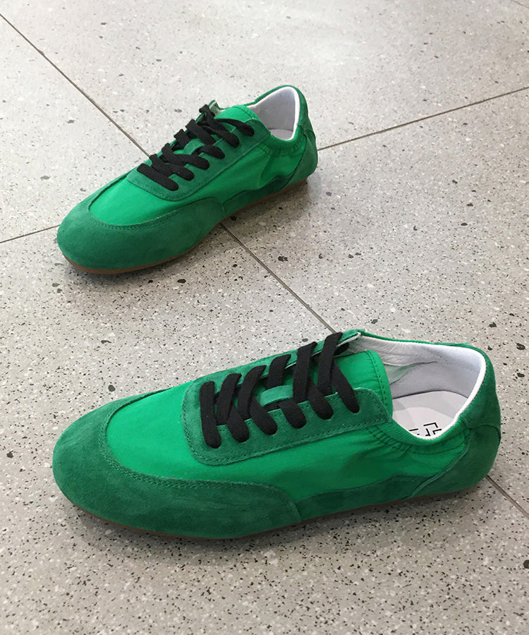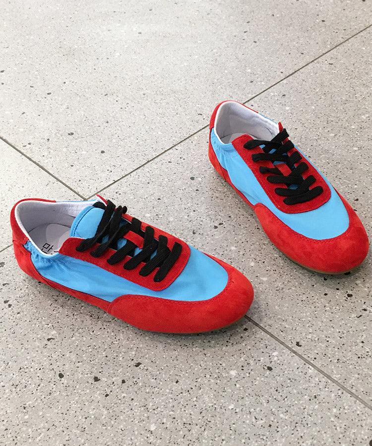 Casual Comfy Red Lace Up Splicing Suede Flat Shoes