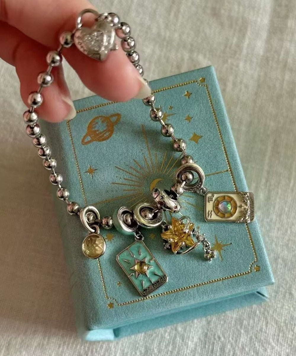 DIY Silk Stainless Steel The Sun, The Moon And The Stars Charm Bracelet