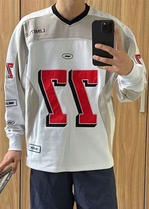 New Black V Neck Print Patchwork Cotton Mens T Shirt Spring