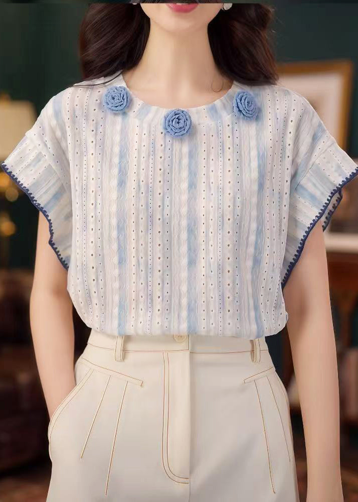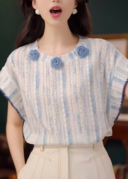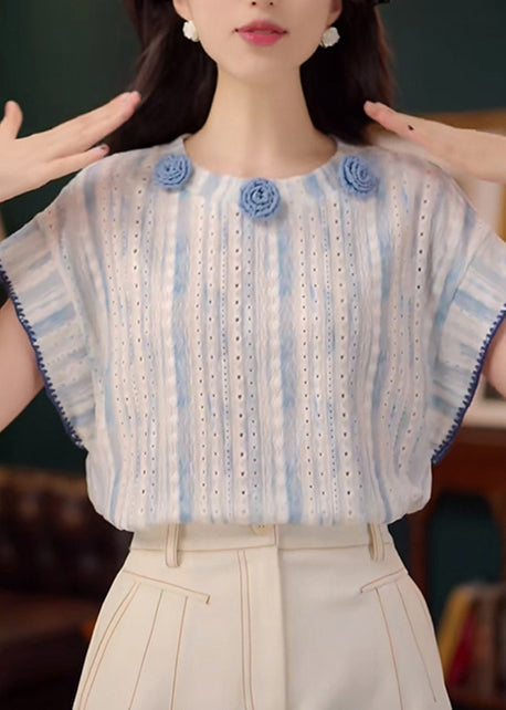 Tanks Summer Out Blue Cotton Organic Hollow Floral Decorated
