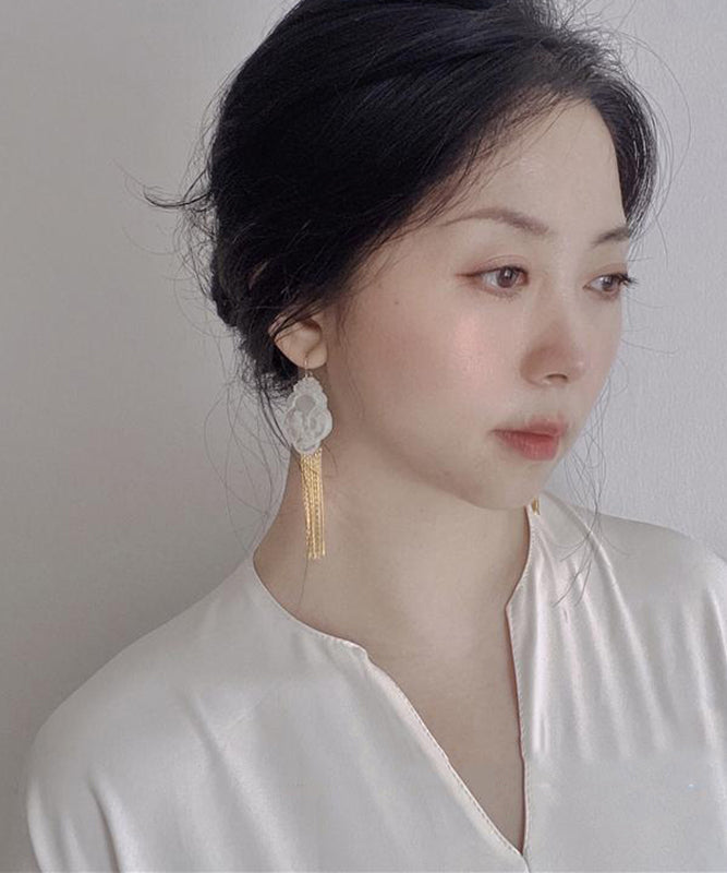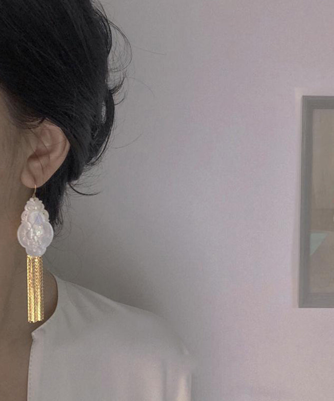 Fine Gold Sterling Silver Overgild Shell Magpie Tassel Drop Earrings