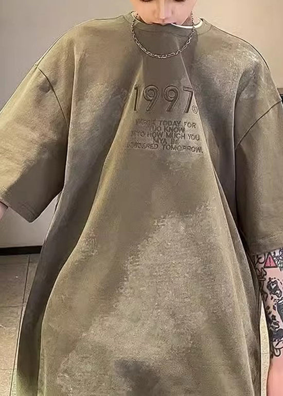 Casual White Embroideried Tie Dye Cotton T Shirt Men Summer