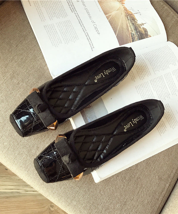 Toe Leather Splicing Flats Pink Women Square Faux Bow