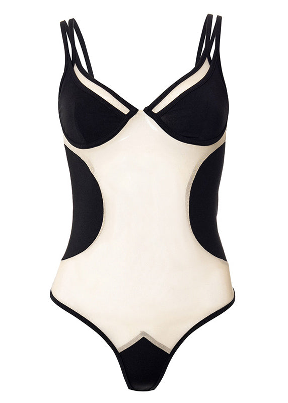 Trendy Black Tulle Patchwork Sexy Sheer Bodysuit TH023