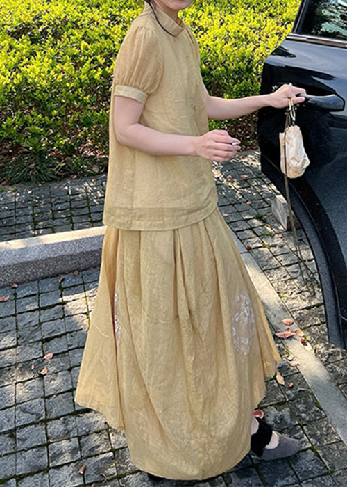 Two Skirts Pieces Tops Set Lace Art Yellow Patchwork And Summer