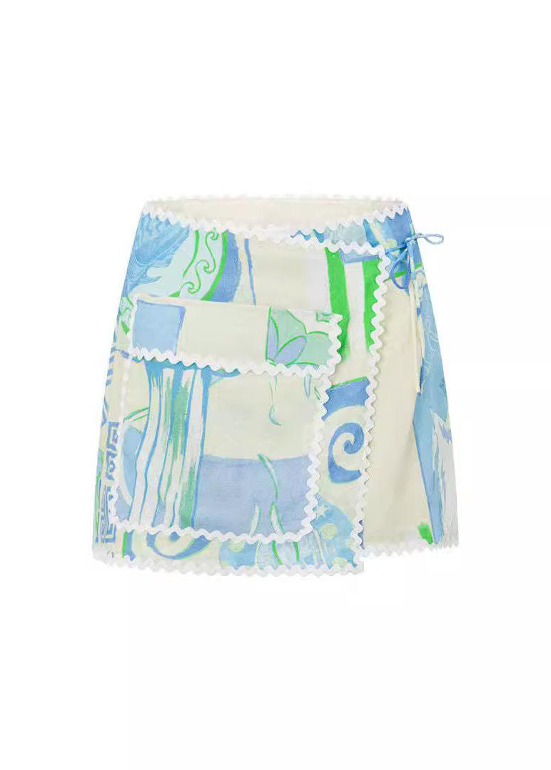 Fashion Beige Peter Pan Collar Tie Waist Shirts And Skirts Two Pieces Set Short Sleeve