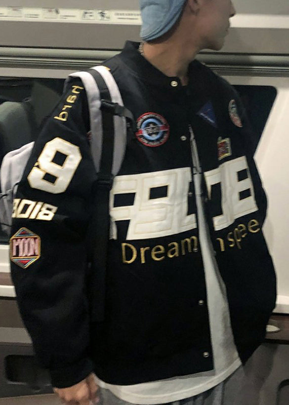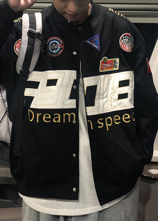 Spring Coats Cotton Black Unique Men TC006 Embroideried Patchwork