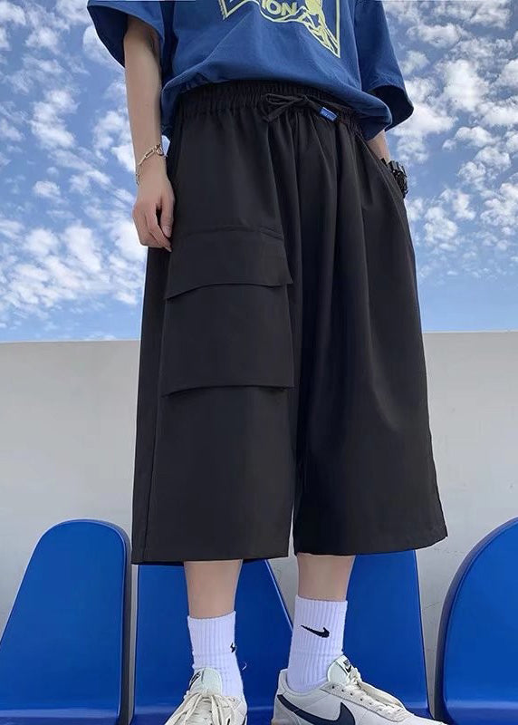 Unique Khaki Pockets Patchwork Elastic Waist Ice Silk Mens Crop Pants YT007