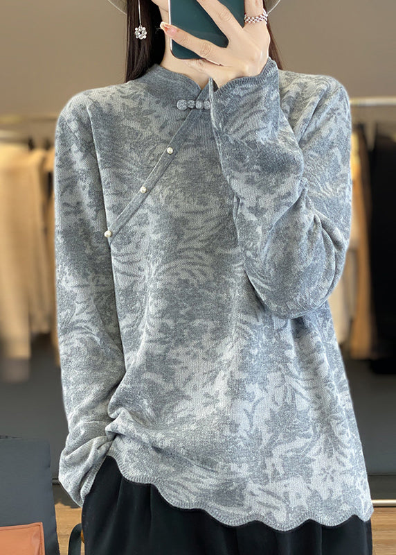 Vintage Beige Stand Collar Jacquard Woolen Sweater Spring TQ011