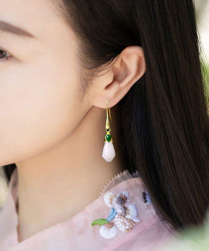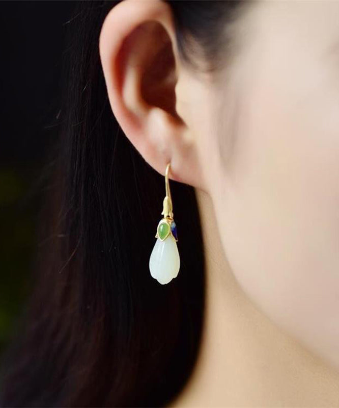 Retro Green Sterling Silver Overgild Jade Water Drop Drop Earrings LL001