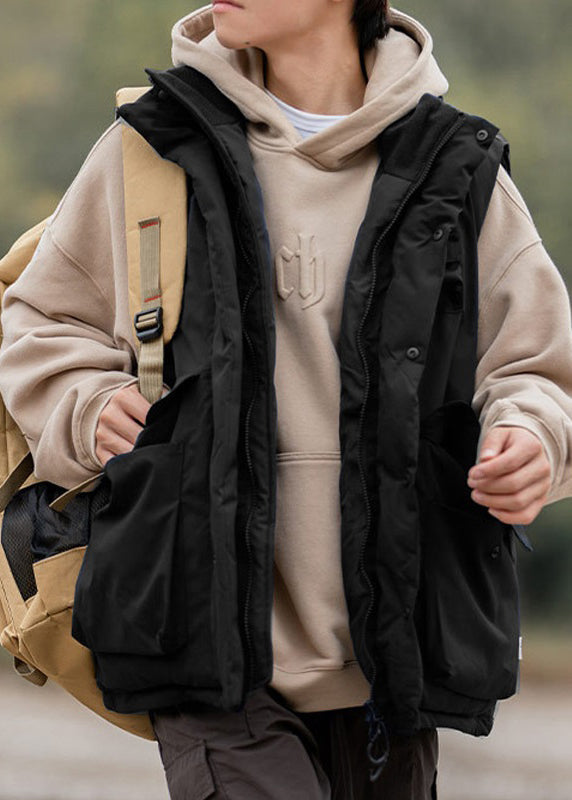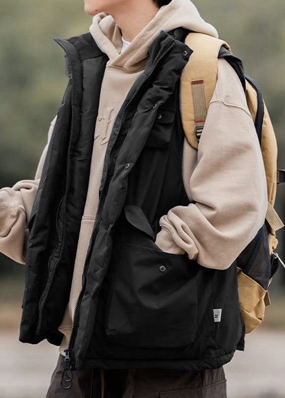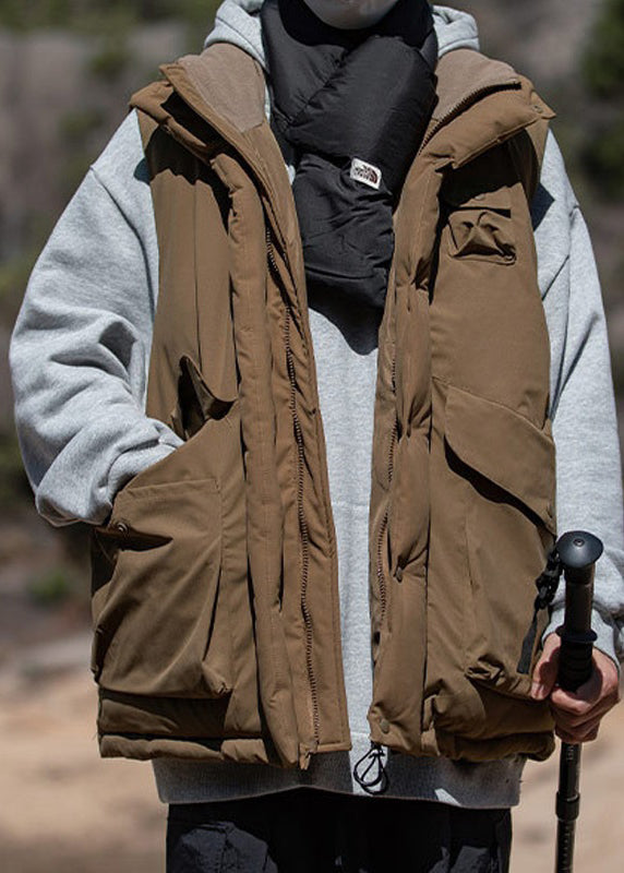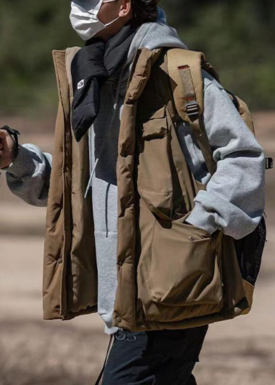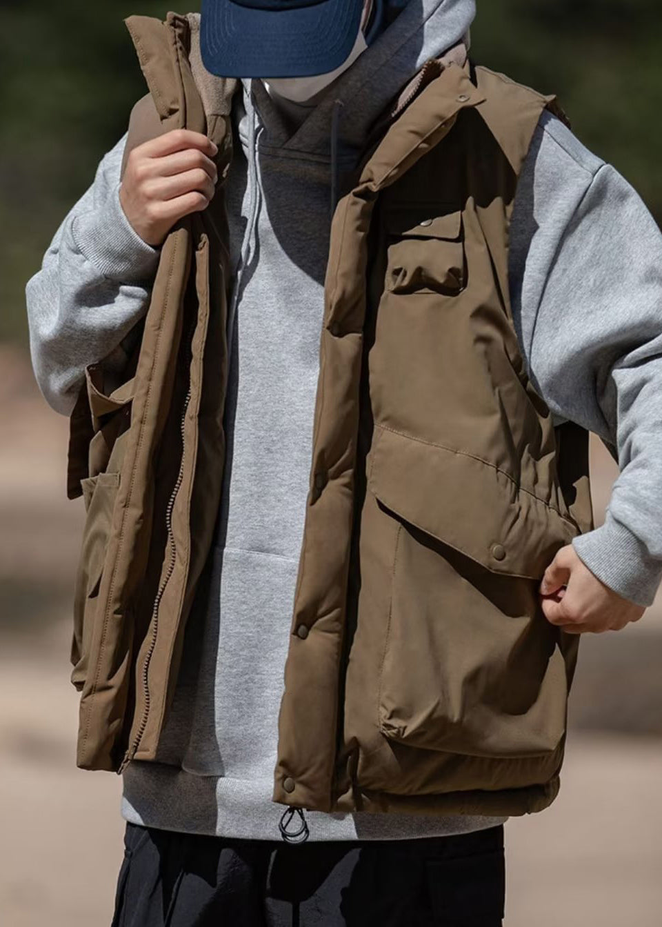 Vintage Khaki Stand Collar Pockets Cotton Filled Men Waistcoat Winter EQ033