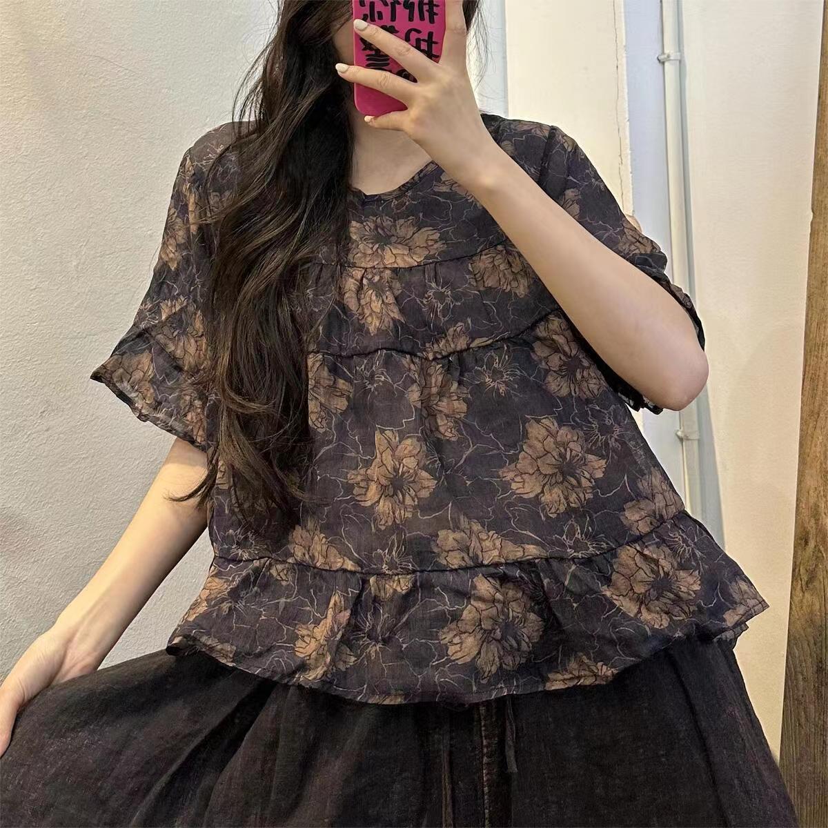This summer, elevate your style with the Vintage Navy Blue Print Patchwork Linen Top, a unique and expertly crafted garment that combines timeless design with modern trends. Made from high-quality linen, this top features a striking patchwork print in a beautiful navy blue color. Perfect for any occasion, this top is a must-have for any fashion-forward individual looking to make a sophisticated statement.
