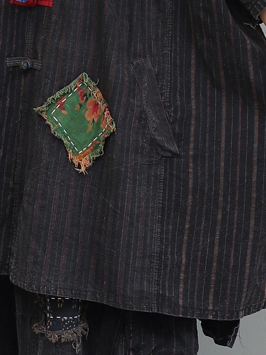 Vintage Patchwork Stripe Suits Autumn Women Loose