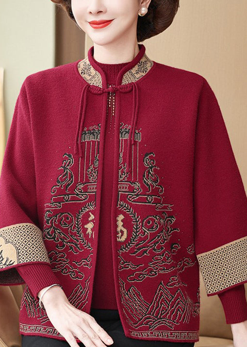 Vintage Red Stand Collar Tassel Knit Two Pieces Set Spring TQ009