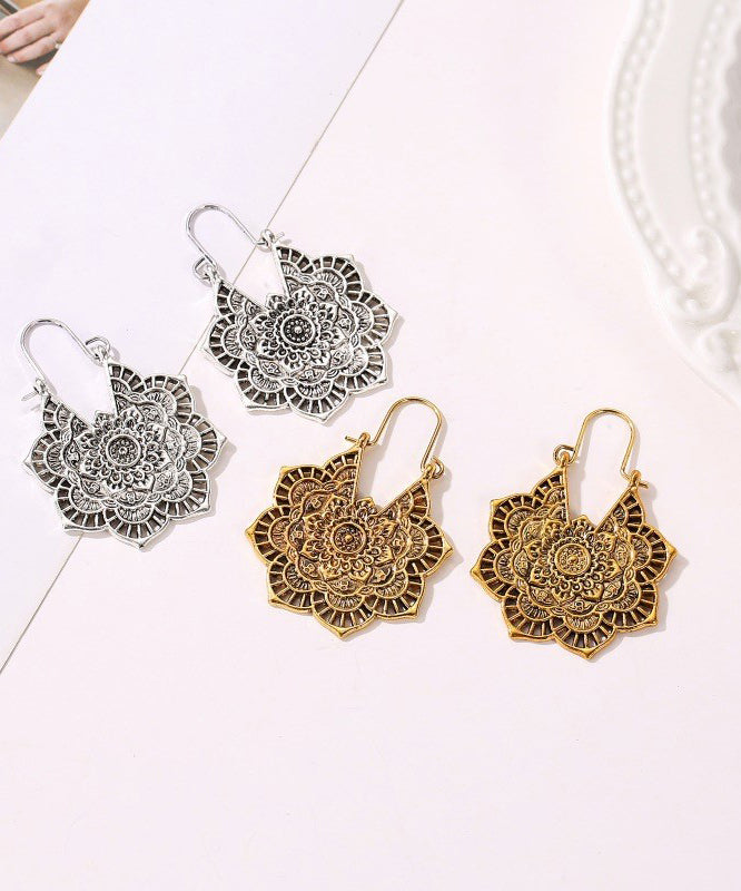 Vintage Silk Sterling Silver Metal Hollow Out Hoop Earrings