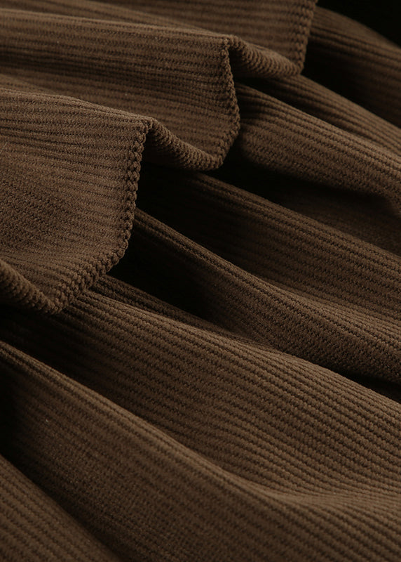 Women Brown Zippered Lace High Waist Corduroy Skirts Summer
