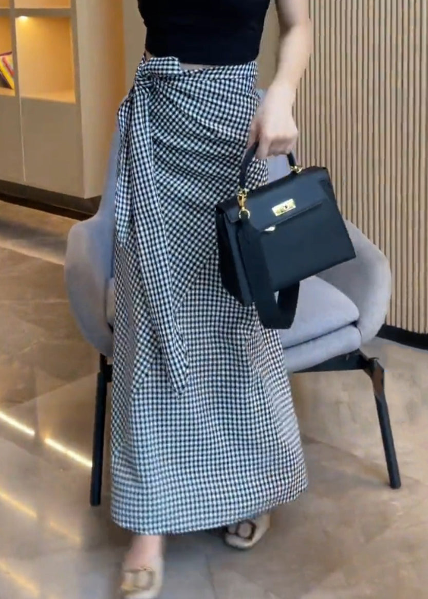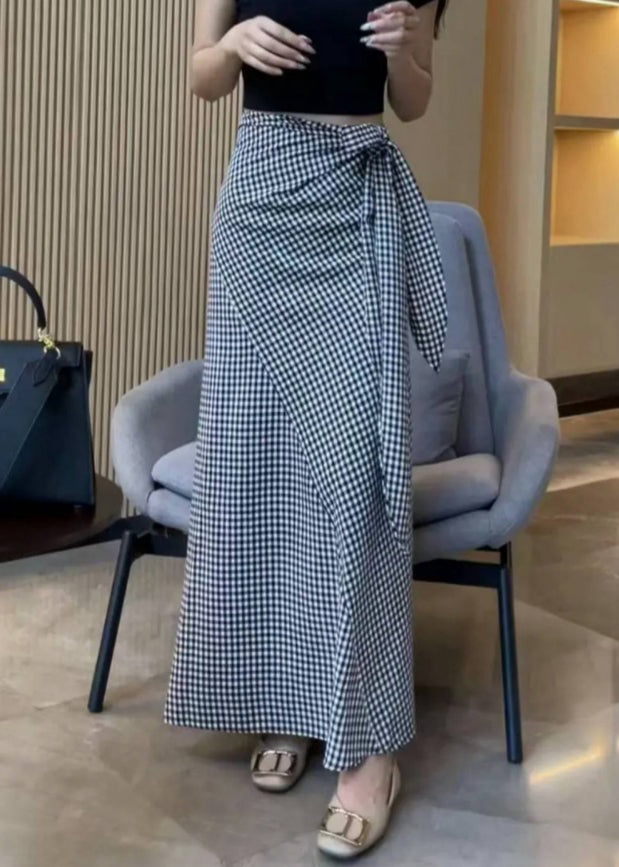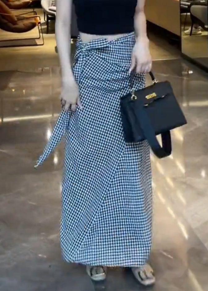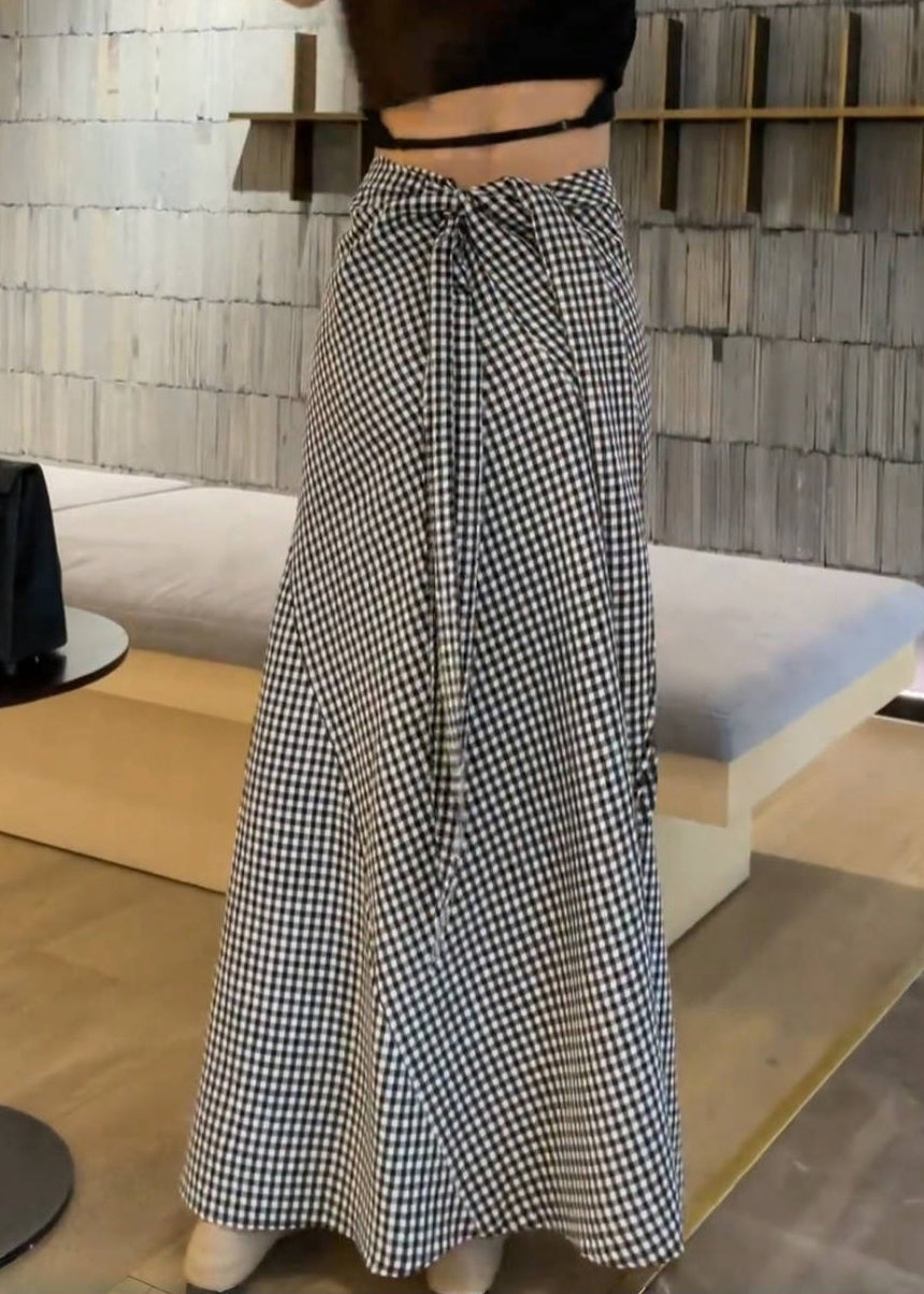 Art Plaid Lace Up High Waist Cotton Skirts Summer