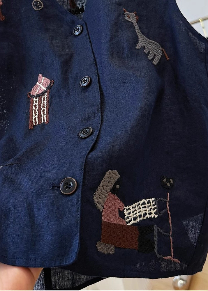 Women White V Neck Embroideried Cotton Vest Sleeveless