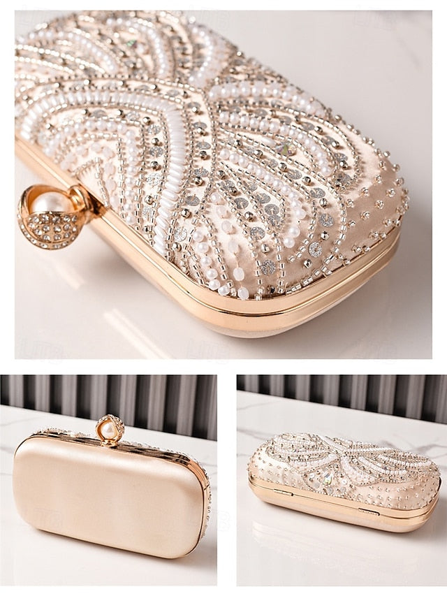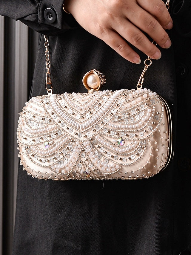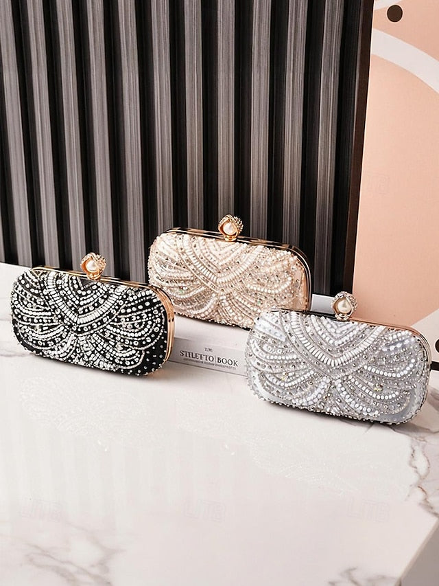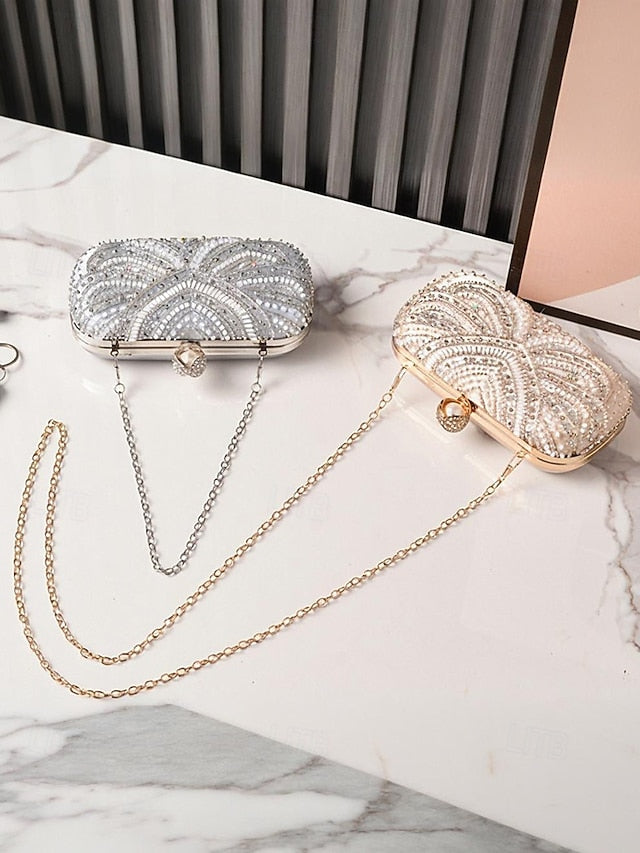 Gender: Women's, Type: Evening Bag, Shoulder Bags, Material: Gretel Materials, Embellishment: Crystals, Chain, Pattern: Solid Color, Detachable strap: Detachable, Adjustable strap: Non-Adjustable, Occasion: Party, Wedding Party, Width (cm): 19.5, Height (cm): 10, Length (cm): 5, Function: Multi Carry, Category: Evening Bag,