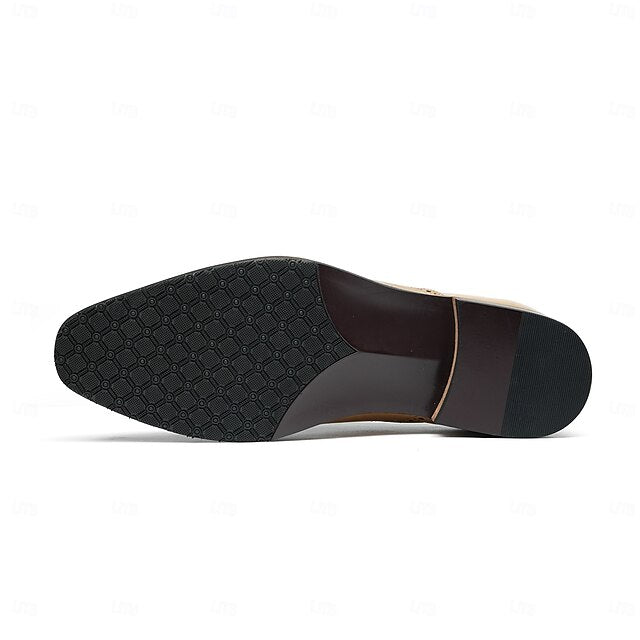 Men's Light Brown Genuine Leather Wingtip Oxford Shoes with