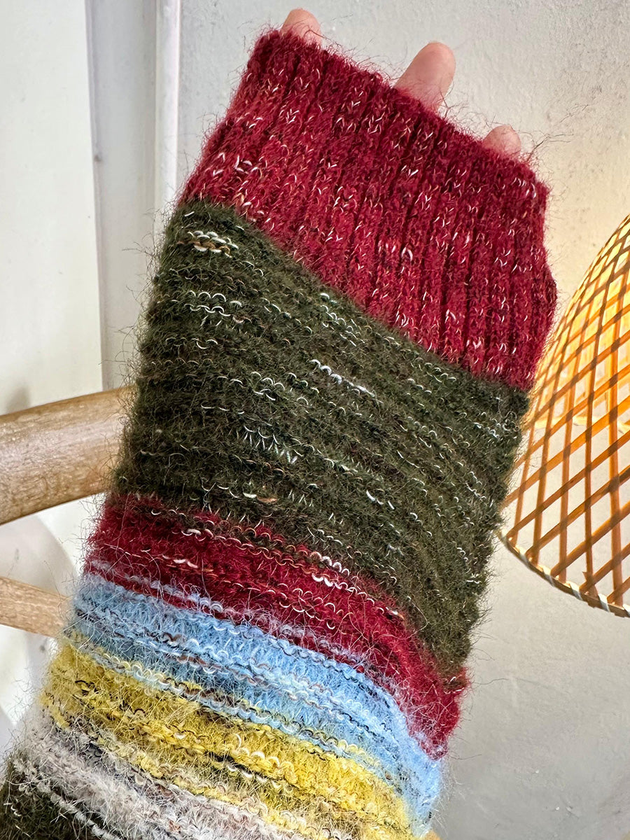 Women Artsy Autumn Stripe Cardigan Sweater Coat AH1027