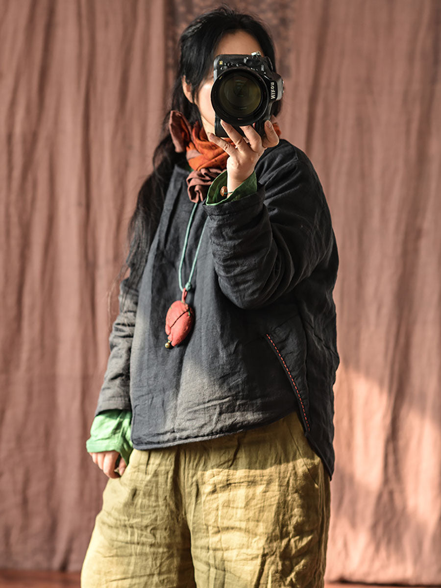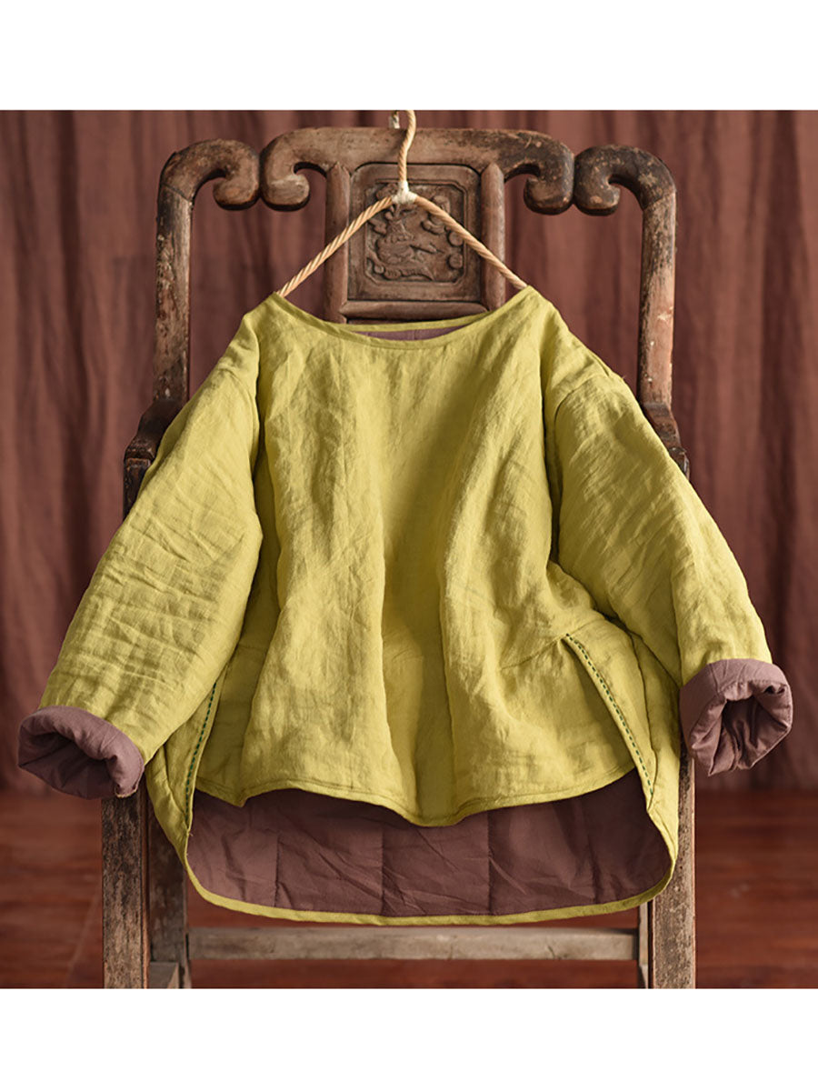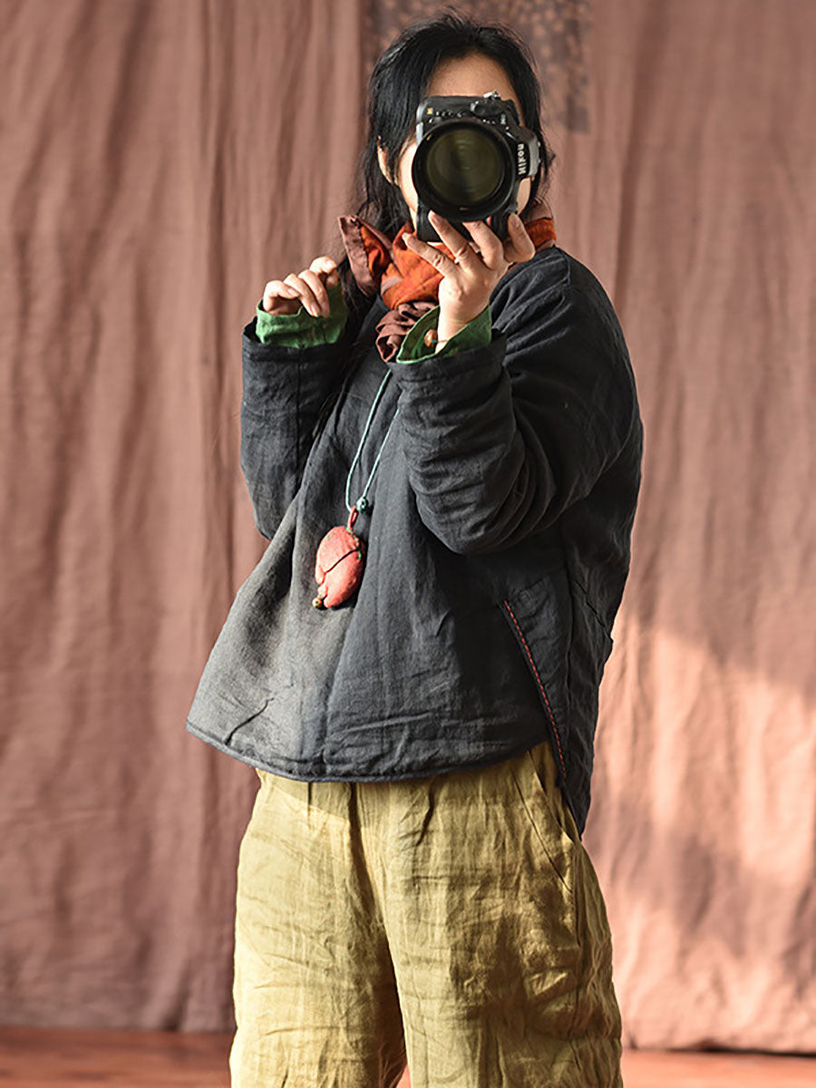 Women Artsy Winter Solid Split Hem Thick Cotton-Padded Jacket AS1020