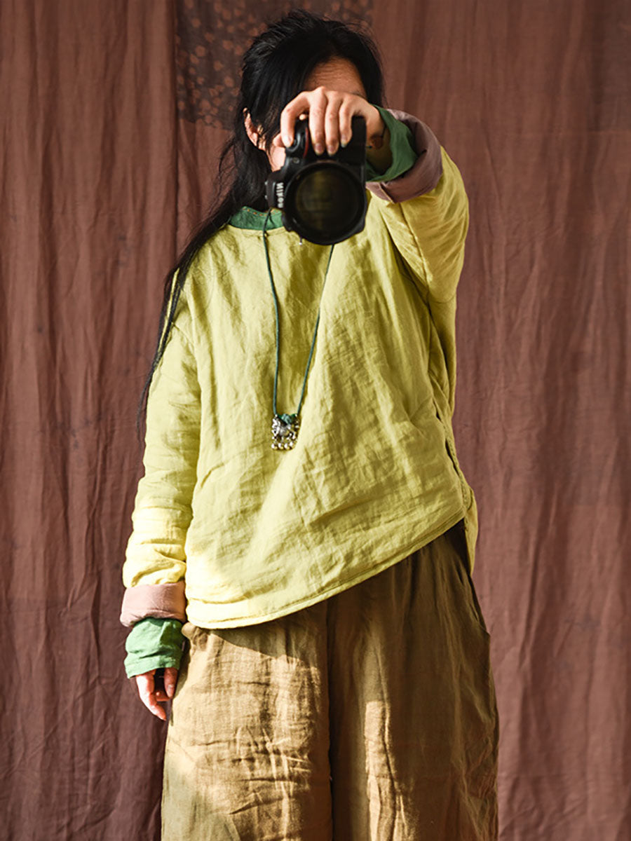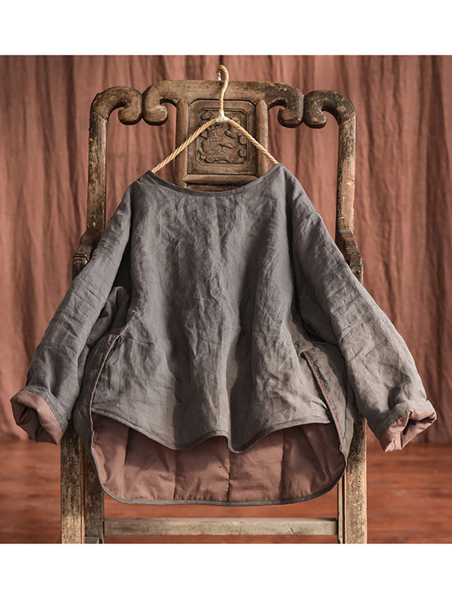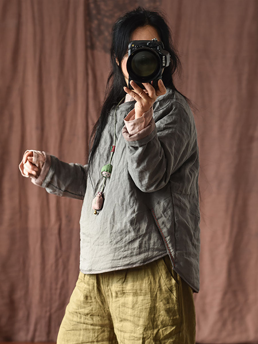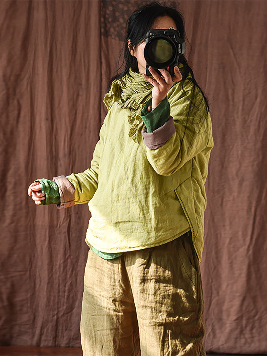 Women Artsy Winter Solid Split Hem Thick Cotton-Padded Jacket AS1020