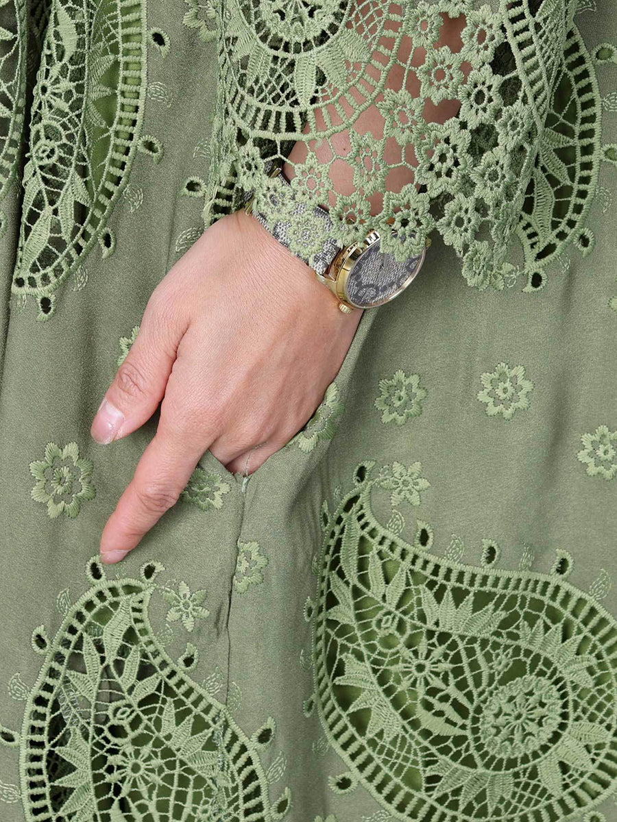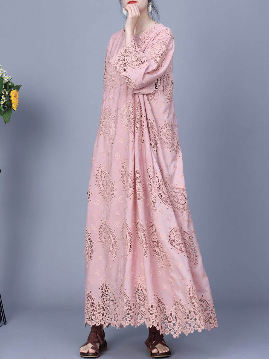 Women Autumn Artsy Dual-layer Cutout Lace Loose Dress RR009