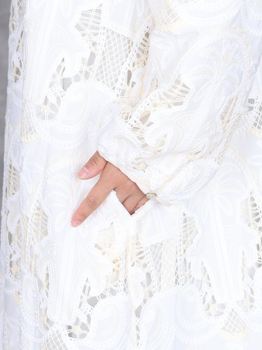 Women Autumn Artsy Lace Cutout O-Neck Dress AH1034