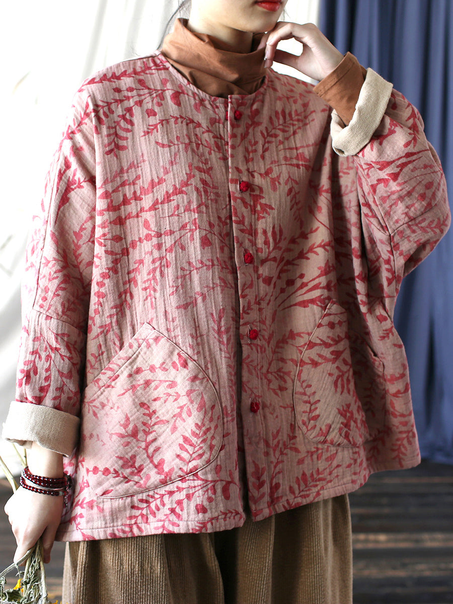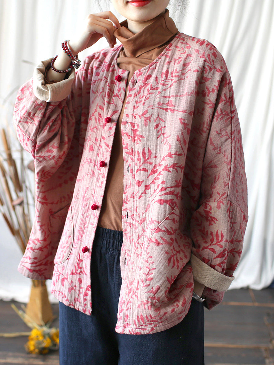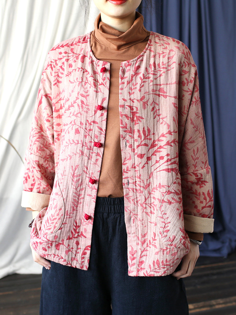 Women Autumn Artsy Leaf O-Neck Cotton Shirt Blouse AT1019