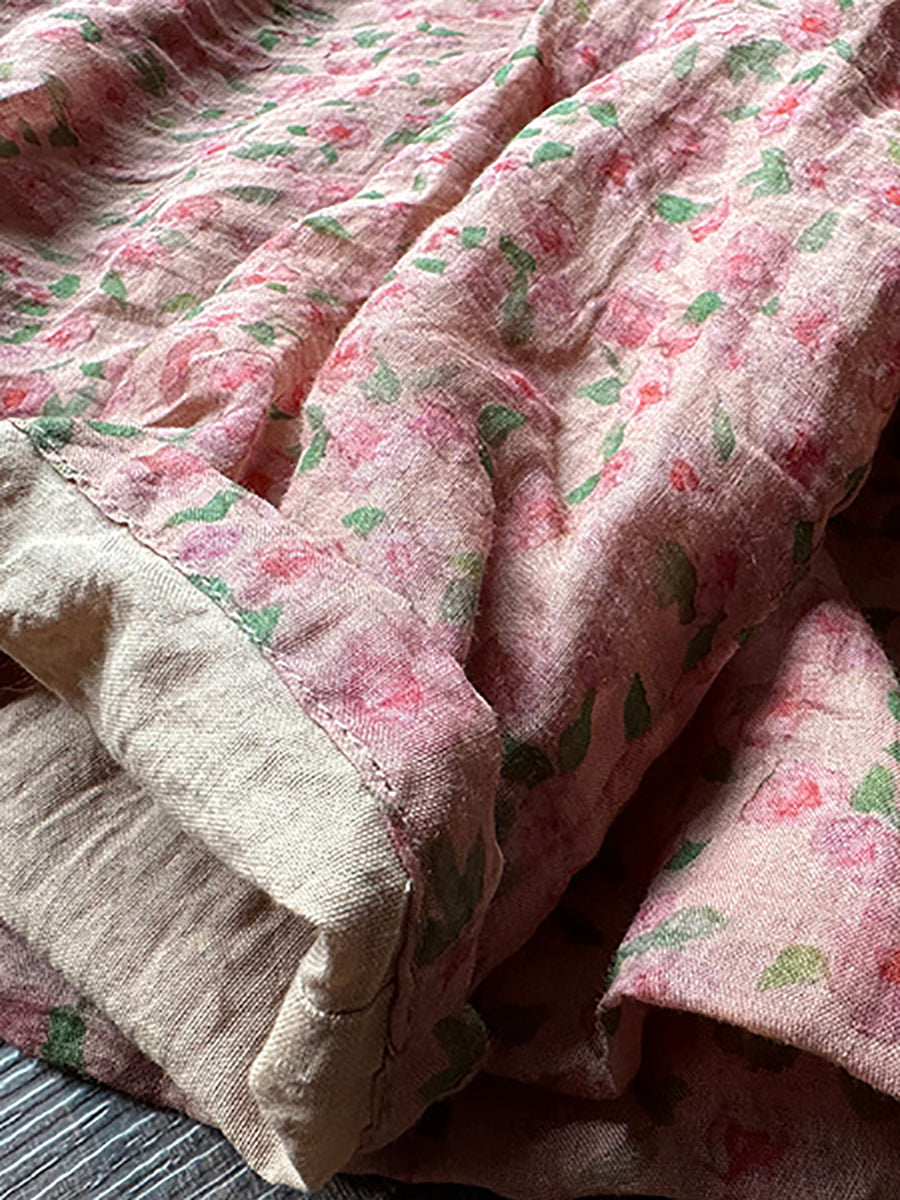 Indulge in the luxurious ramie fabric and admire the stunning floral pattern of this turtleneck blouse. Embrace the full raglan sleeves and artistic aesthetic, making it ideal for both spring and autumn.
