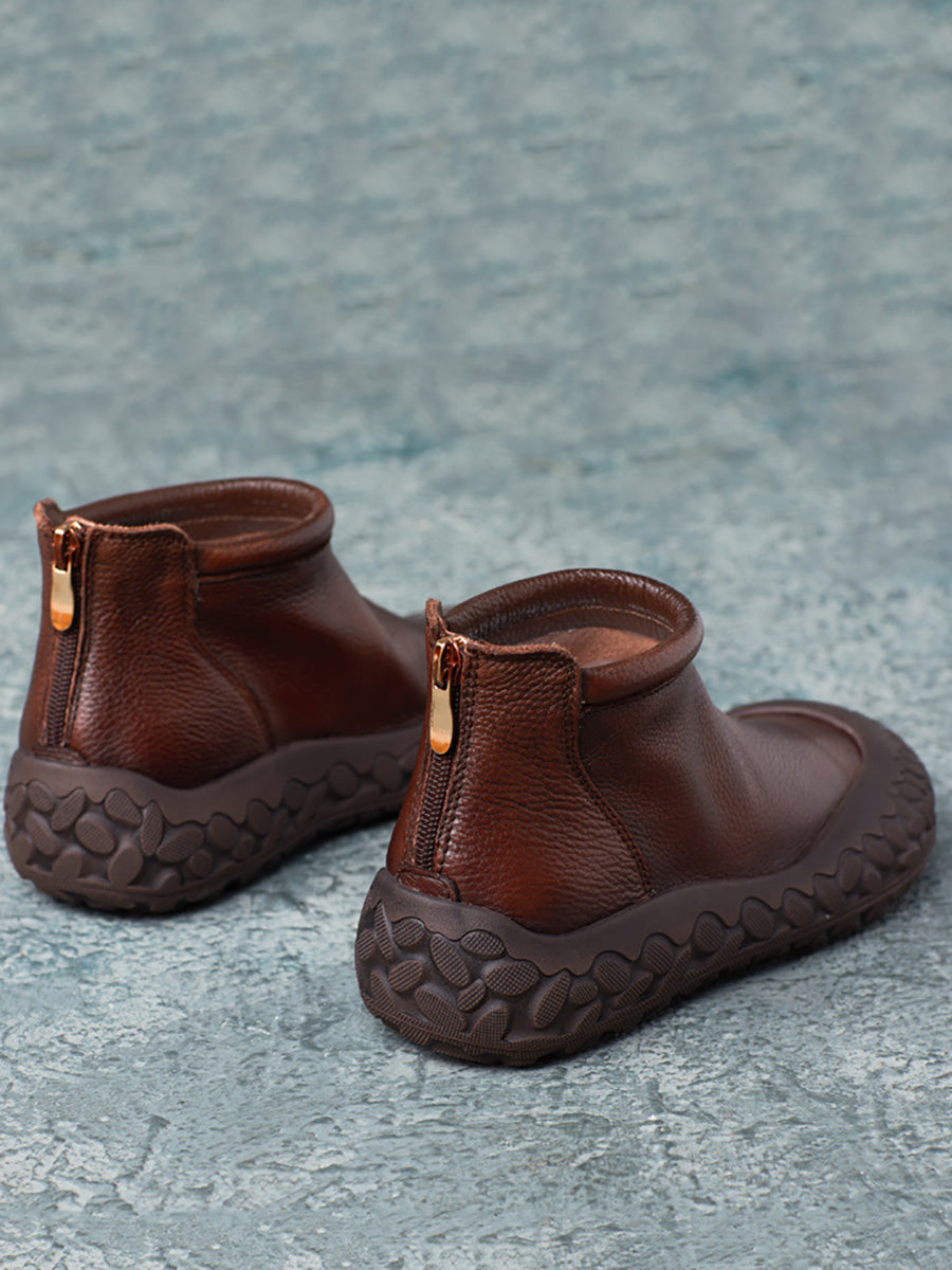 Introducing our Women Autumn Casual Pure Color Leather Zipper Flat Boots! Perfect for a casual day out, these boots will keep your feet comfortable and stylish. No more struggling with laces, just zip and go! Available in a variety of colors for any outfit. (Fashion AND function, these boots are the whole package!)