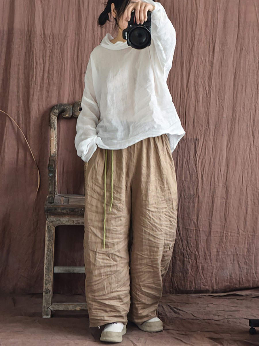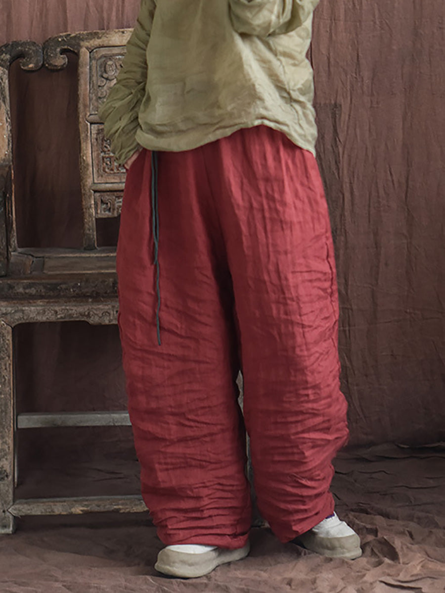 Women Autumn Casual Solid Strap Linen Bloomers AI1067