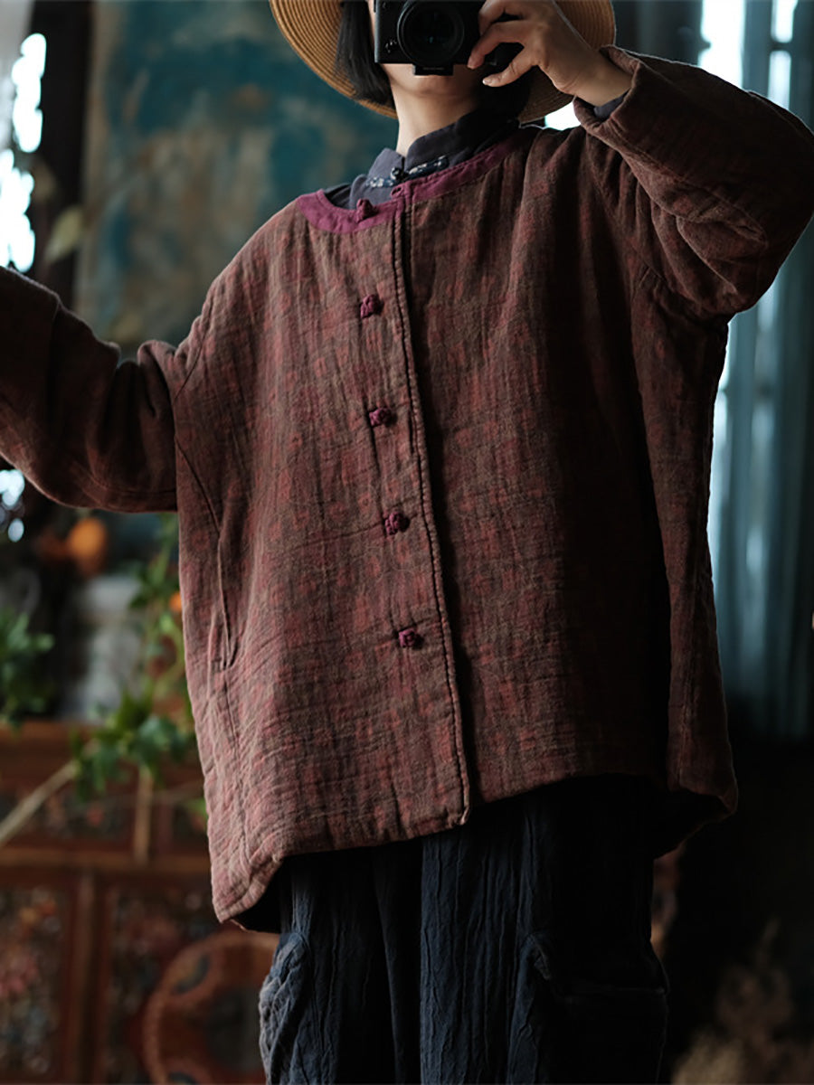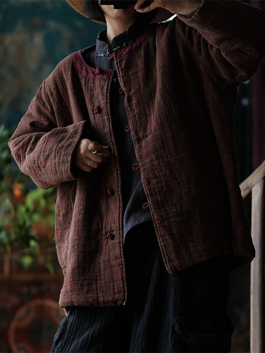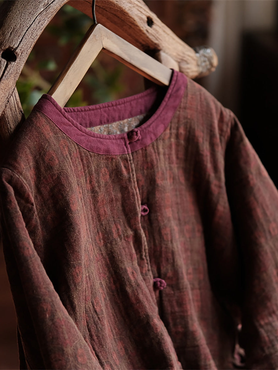 Women Autumn Ethnic 100%Cotton Colorblock Padded Coat AI1063