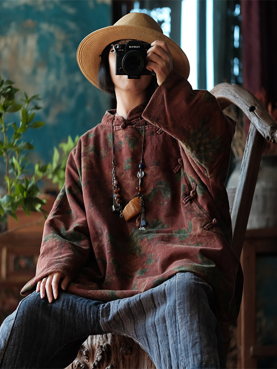 Women Autumn Ethnic Flower 100%Cotton Loose Coat AT1050