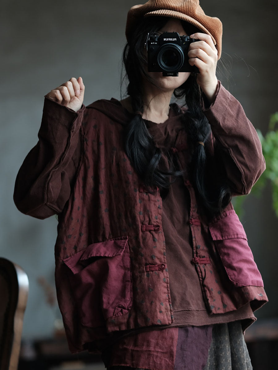 Women Autumn Patchwork Spliced Hooded 100%Linen Vest AV1028