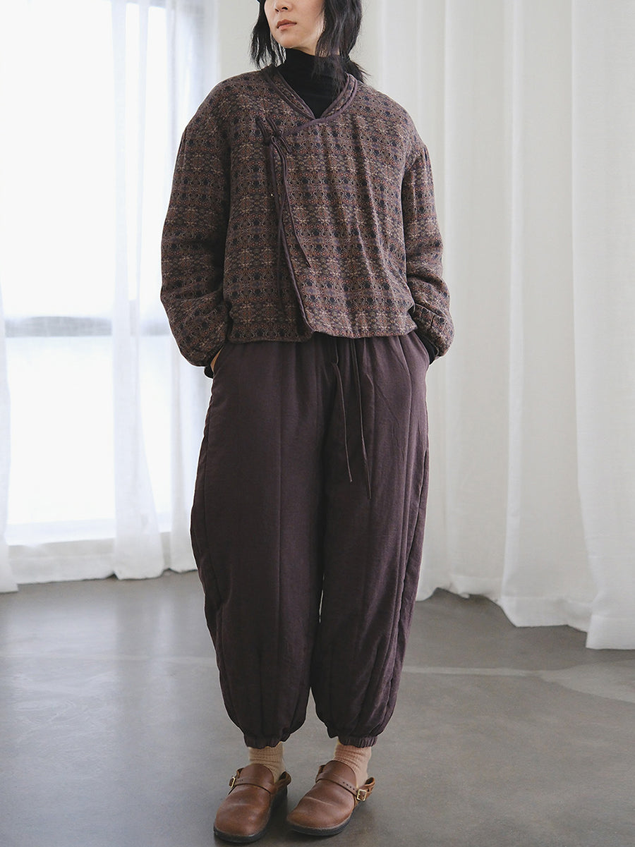 Indulge in the exquisite retro beauty of this cotton coat, complete with a graceful stand collar and full raglan sleeves. The delicate floral pattern adds a subtle hint of femininity, making it the ultimate autumn and winter essential. Meticulously crafted from premium cotton, this coat effortlessly blends style and functionality.
