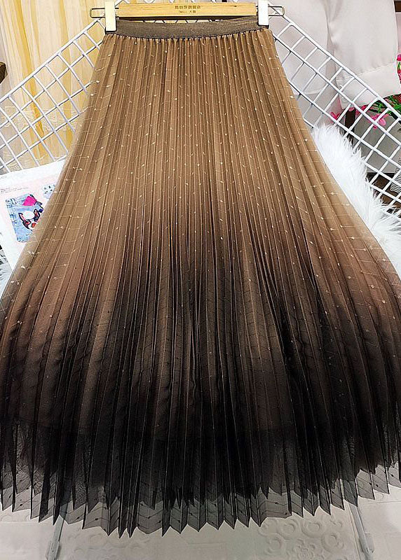 Women Blue Elastic Waist Sequins Gradient Color Tulle Pleated Skirt Spring AJ1003