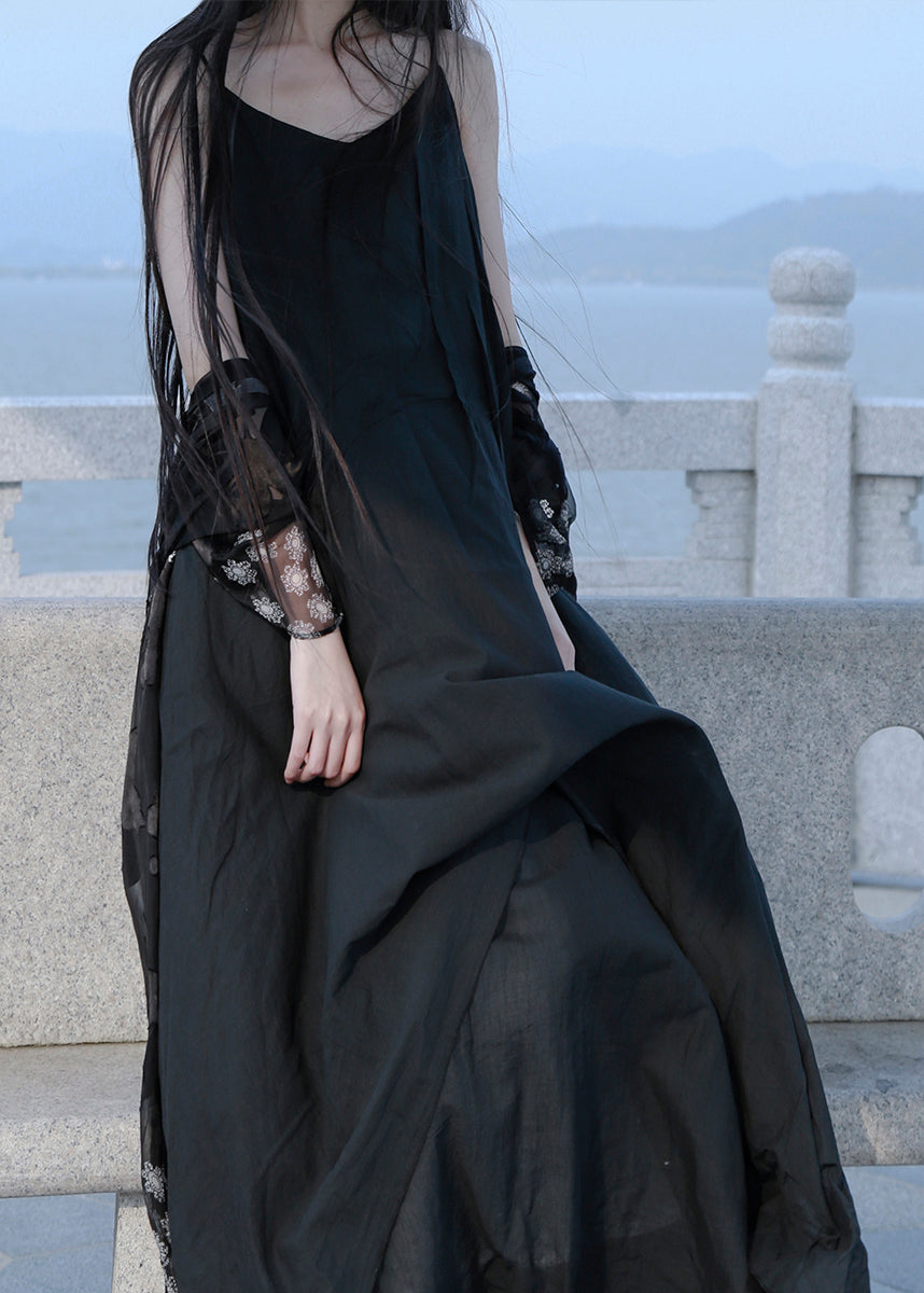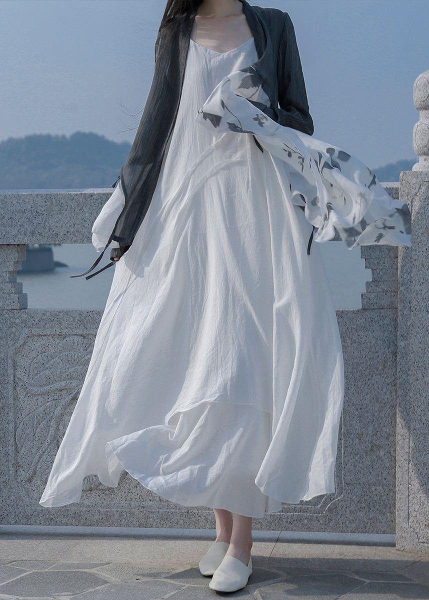 Women Blue Patchwork Cotton Spaghetti Strap Dress Summer RU022