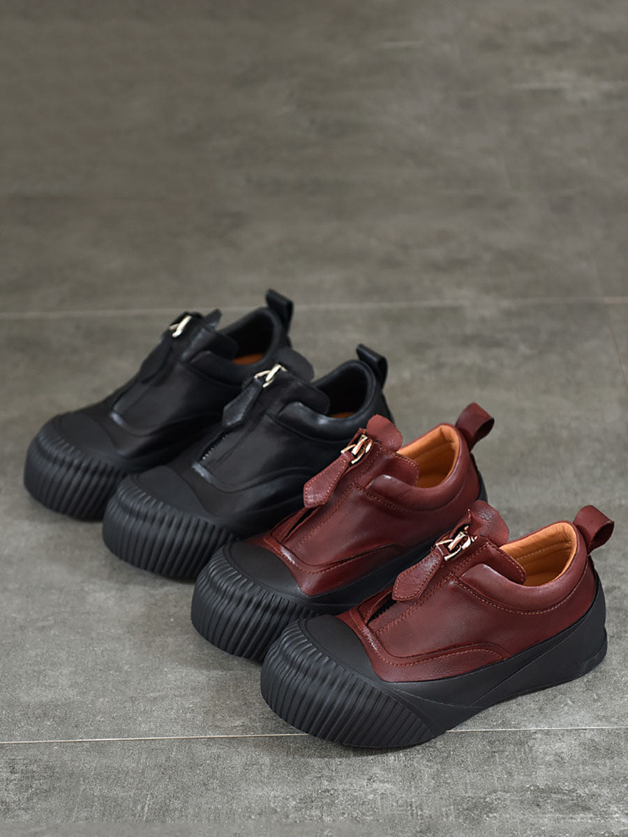 Elevate your style with our Women Casual Genuine Leather Zipper Platform Shoes. Crafted from high-quality leather, these shoes add a touch of luxury to your everyday look. The zipper design not only adds a modern twist, but also provides a secure fit. Step up your fashion game with these elegant and stylish platform shoes.