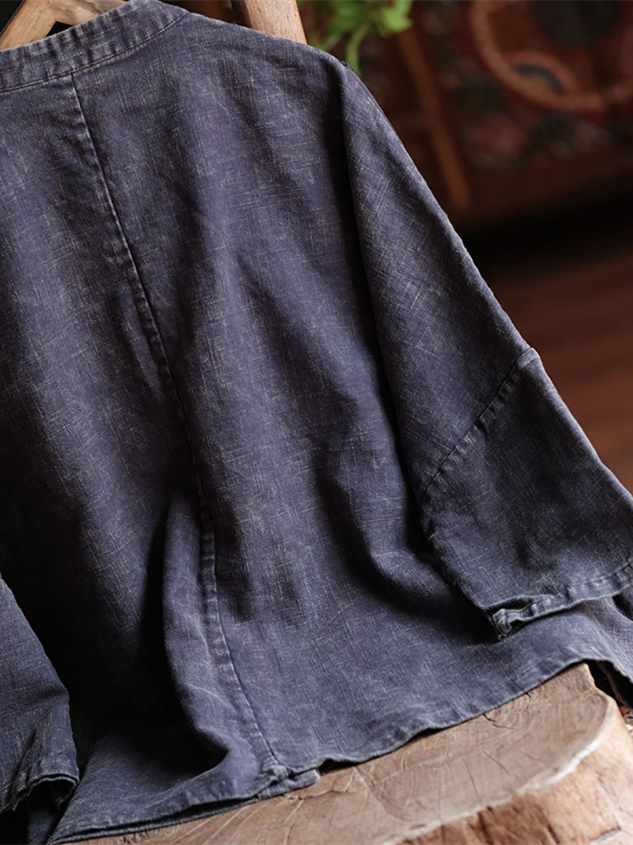 Women Ethnic Colorblock Spliced Buckle Linen Shirt AV1017