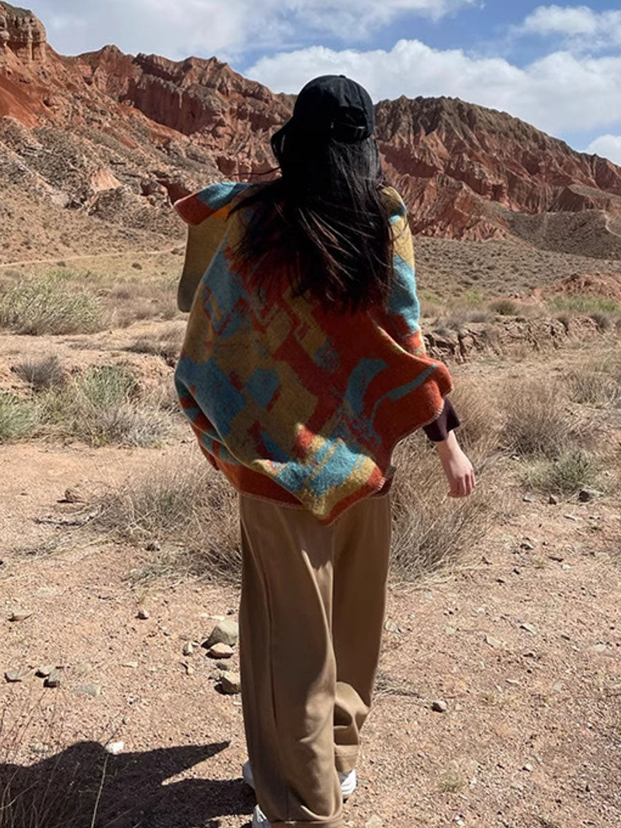 Women Ethnic Colorblock Warm Shawl Scarf QM018